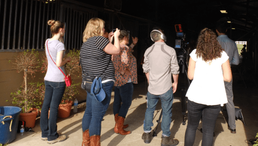 The film was shot at Bel Canto Farms on a hot August morning. There was quite a crew there and a behind the scenes pic is below.